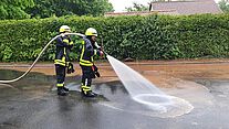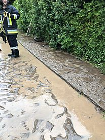 Als die meiste Erde dann entfernt war, spritzen wir die Straße und den Gehweg noch sauber. Nach fast drei Stunden war der Einsatz dann erfolgreich beendet.
