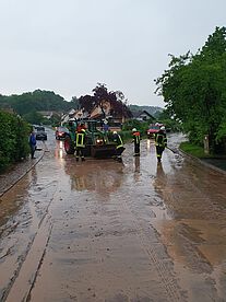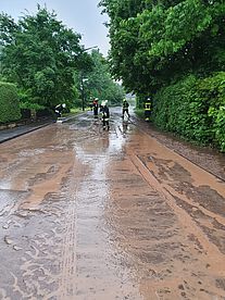 Am Dienstag, den 08. Juni, wurden wir um 16:55 Uhr aufgrund des starkregens alarmiert. Aus dem Alarmfaxes konnten wir direkt herauslesen, dass die Fahrbahn, als auch der Gehweg, in der Wildenbergrstraße überschwemmt seien. Innerhalb kürzester Zeit waren beide Fahrzeuge unserer Wehr gefüllt und die Kameraden fuhren zum Einsatzort. Dort angekommen stellte sich heraus, dass die Straße nicht nur mit Wasser überschwemmt ist, sondern auch mit viel Erde und Sand.